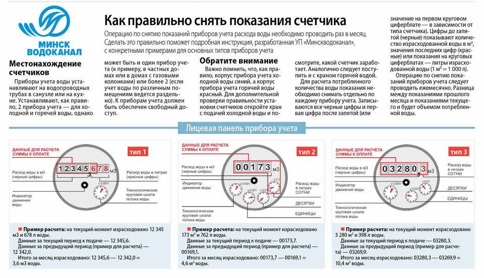 - Записать показания для холодной и горячей воды отдельно